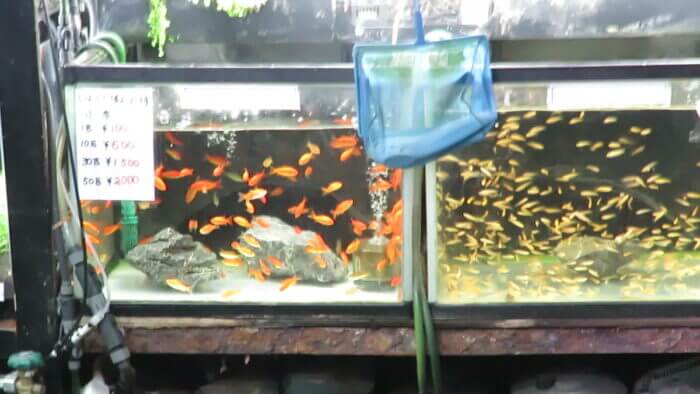 観賞魚の種類も豊富で、金魚、鯉、メダカ、小型熱帯魚、大型魚にベタとなんでもいるんじゃないかと思うぐらい種類も多いです。