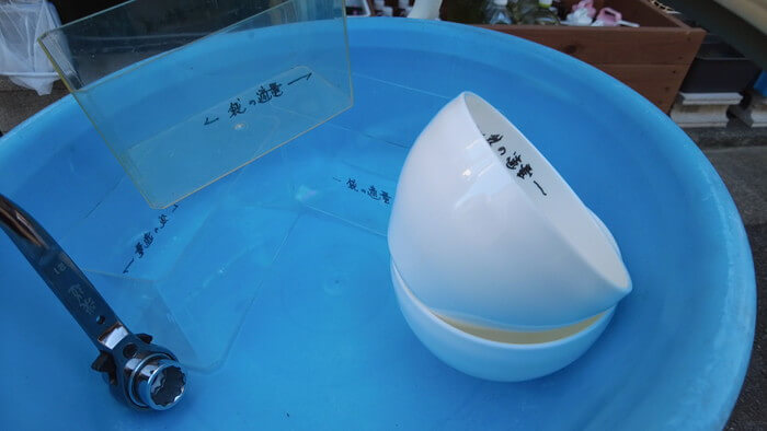 容器には線が書かれており、この線まで水を入れれば袋にピッタリの水量になるそうです。