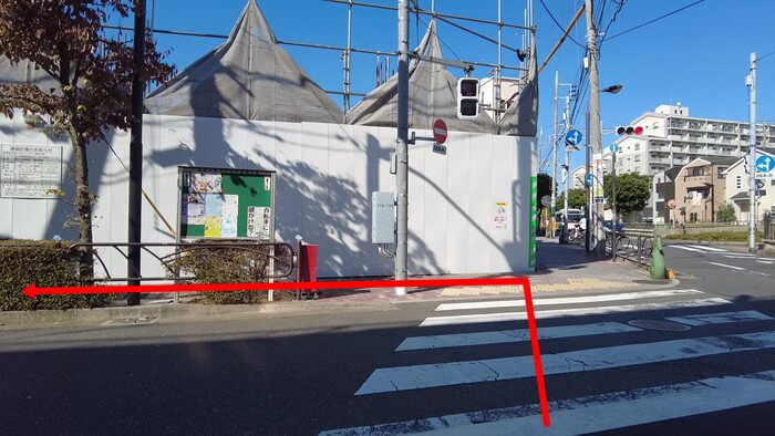 まっすぐ進むと平和橋通りに出るので、横断歩道を渡ったら左へ曲がります。