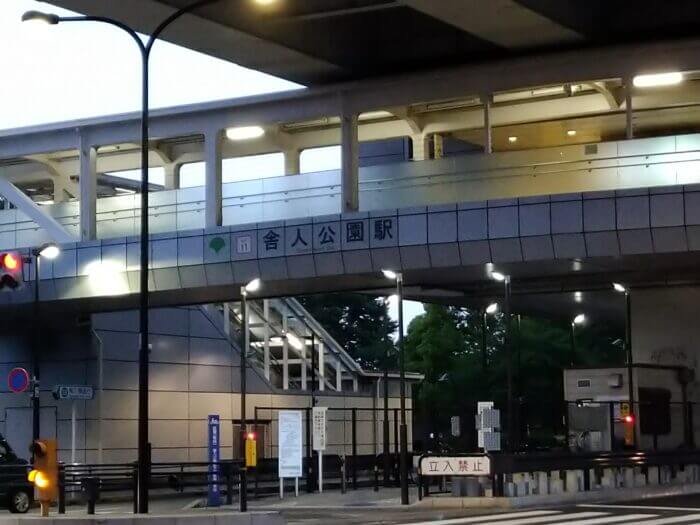 東口階段を降りると目の前に舎人公園があるので、左奥へ進むように向かいます。