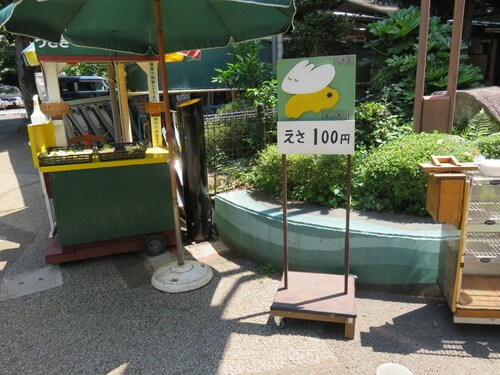 ②入口でエサと手袋を借りよう。