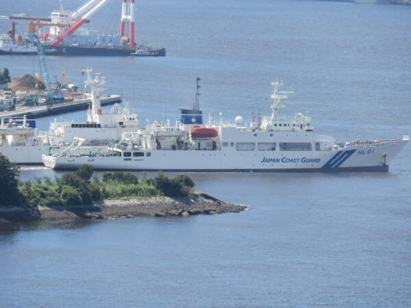 海側は色々な船も見られるよ。